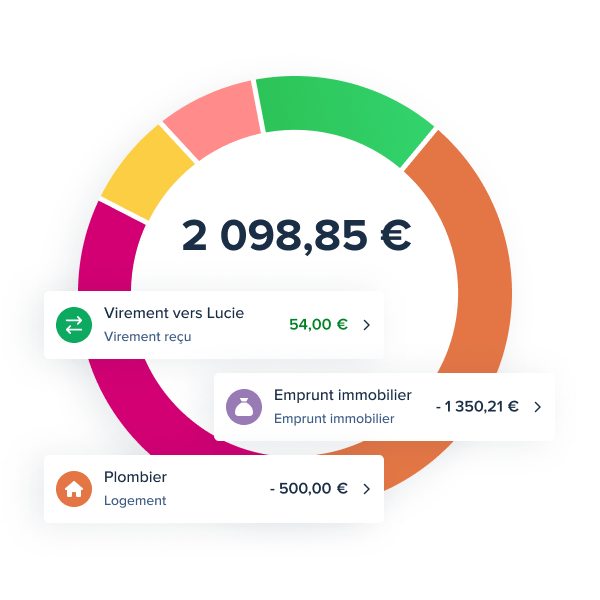 Grâce à nos différents outils, visualisez en un clin d'oeil la répartition de vos revenus et de vos dépenses. On met à votre disposition toutes les clés pour gérer votre budget de manière autonome et 100% en ligne.