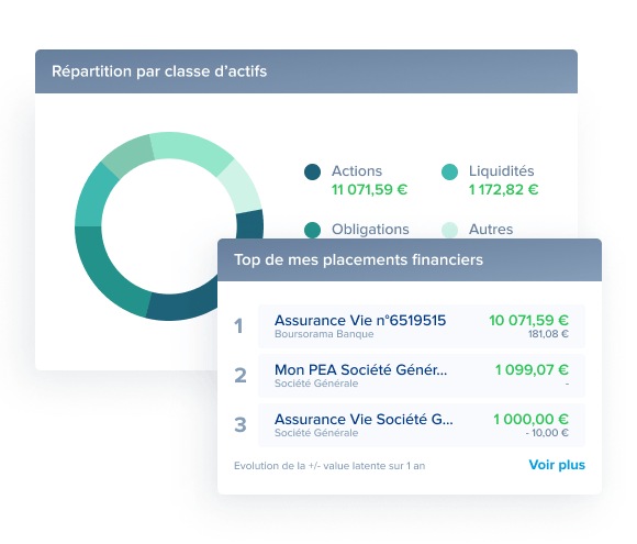 En plus de vos comptes bancaires, vous pourrez synchroniser votre épargne financière, votre carte restaurant, vos crédits, votre patrimoine immobilier et votre portefeuille de crypto-monnaies.